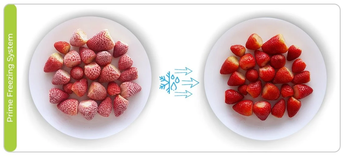 Unlike IQF, each product is studied based on the type of fiber it has, so when it enters freezing, each one has a different power, frequency and time parameter.
